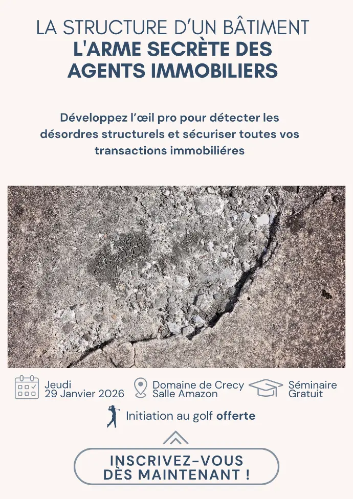 Cette mini conférence de 45min vous révèle pourquoi la compréhension de la structure d’un bâtiment est l’outil le plus sous-estimé — et pourtant le plus puissant — pour un agent immobilier. Vous apprendrez à lire un bien au-delà de son apparence, à identifier les points forts d’une construction, ses faiblesses potentielles et les opportunités de valorisation qu’un œil non averti ne voit pas. En comprenant les fondations, les murs porteurs, la toiture, les réseaux et les principaux risques structurels, vous serez en mesure d’accompagner vos clients avec une expertise rare sur le marché. Cette connaissance deviendra votre arme secrète pour gagner en crédibilité, sécuriser les transactions et générer plus de ventes grâce à un conseil à forte valeur ajoutée.